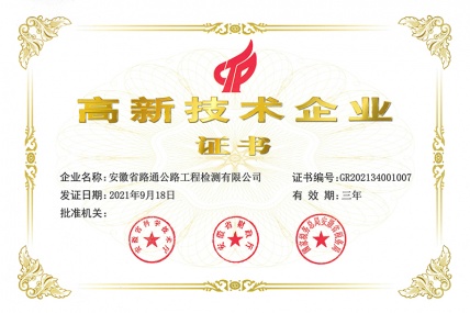 12月14日,安徽省交通建設(shè)股份有限公司下屬全資子公司安徽省路通公路工程檢測(cè)有限公司(以下簡(jiǎn)稱路通檢測(cè)公司或公司)喜獲“高新技術(shù)企業(yè)”榮譽(yù),標(biāo)志著路通檢測(cè)公司正...