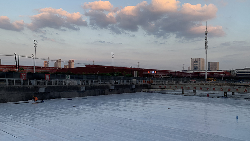 宿松路快速化改造工程地處城市建成區(qū),周邊環(huán)境復(fù)雜,施工面臨地下管網(wǎng)縱橫交錯(cuò)、基坑開(kāi)挖深度大、結(jié)構(gòu)防裂、防水要求高等難題。面對(duì)復(fù)雜而苛刻的條件,安徽交建項(xiàng)目部實(shí)現(xiàn)了多項(xiàng)行業(yè)“首創(chuàng)”:針對(duì)市政干作業(yè)基坑圍護(hù)樁垂直度控制不佳,我部采購(gòu)2臺(tái)RSM-HGT(D)型超聲波成孔質(zhì)量檢測(cè)儀對(duì)樁基垂直進(jìn)行檢測(cè)、及時(shí)糾偏;施工過(guò)程中使用全站儀對(duì)旋挖鉆機(jī)桅桿垂直度進(jìn)行檢查、糾偏;為有效控制地道側(cè)墻混凝土裂縫,選擇摻加ART-MPC無(wú)機(jī)納米抗裂密實(shí)劑,提高混凝土抗裂性。養(yǎng)護(hù)采用水能量節(jié)水保濕養(yǎng)護(hù)膜,將液態(tài)水轉(zhuǎn)化為固態(tài)水,通過(guò)毛細(xì)管作用,源源不斷的向養(yǎng)護(hù)面滲透,同時(shí)吸收砼水化熱過(guò)程中蒸發(fā)水,在一個(gè)養(yǎng)護(hù)周期內(nèi)保證養(yǎng)護(hù)體表面保持濕潤(rùn),相對(duì)濕度≥90%;為避免變形縫滲水情況,施工過(guò)程中增設(shè)一道中埋式止水帶。同時(shí)針對(duì)止水帶安裝及焊接等薄弱環(huán)節(jié)加強(qiáng)控制,安排固定人員培訓(xùn),舉辦焊接比賽,提升焊接技術(shù)。