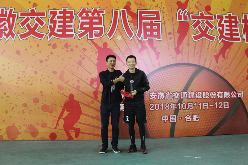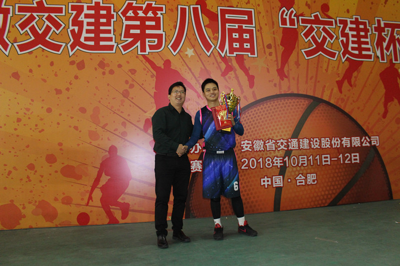 在閉幕式上,安徽交建領(lǐng)導(dǎo)吳學懿、陳明洋、吳小輝、柳欣分別為冠軍、亞軍、季軍和MVP頒發(fā)獎杯并表示祝賀。最后,吳總宣布本屆籃球比賽圓滿落幕,期待明年再會!