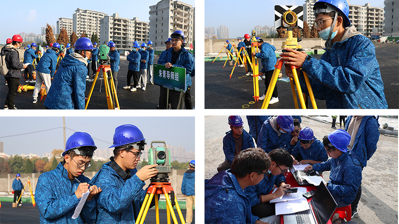 本次大賽分為測量理論知識考核和技能實操競賽兩個部分。在理論考試中,各位學(xué)員邊思考邊答題,秩序井然。在“全站儀對點賽”和“水準(zhǔn)+全站”實操競賽中,導(dǎo)師們通過抽簽,將身份轉(zhuǎn)換為裁判,對比賽進(jìn)行全程跟蹤。隨著總裁判的一聲令下,參賽學(xué)員們有條不紊地啟動全站儀、水準(zhǔn)儀等測量儀器設(shè)備。