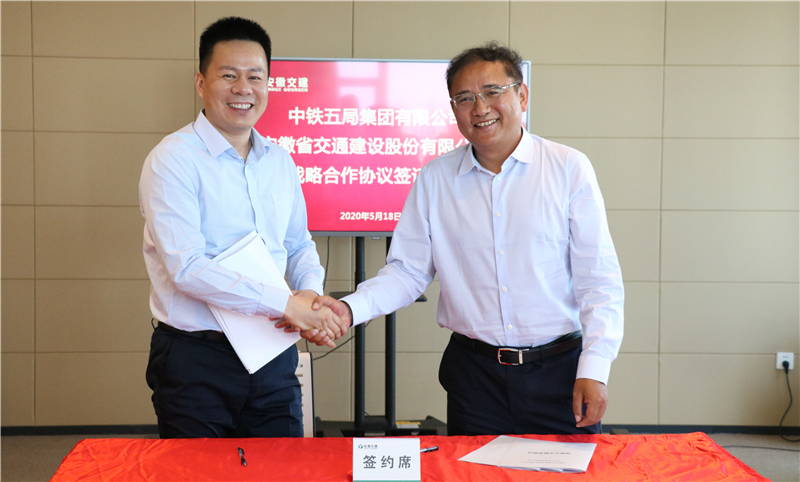 5月18日上午,安徽省交通建設股份有限公司(股票簡稱:交建股份,股票代碼:603815)與中鐵五局集團有限公司簽署戰(zhàn)略合作協(xié)議。雙方將本著“優(yōu)勢互補、共同發(fā)展、誠信合作、戰(zhàn)略雙贏、互惠互利”的原則,建立全面合作戰(zhàn)略伙伴關系。中鐵五局集團有限公司華東區(qū)域指揮部常務副指揮長趙文軍,安徽省交通建設股份有限公司總裁彭小毛等出席了簽約儀式。