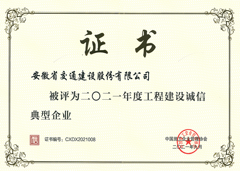 2021年度工程建設(shè)誠(chéng)信典型企業(yè)